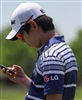 Titleist Brand Ambassador Seung-yul Noh takes a quick range break to answer some text messages.