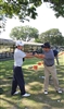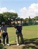 The Alignment Stick being used again, with Lee helping the golfer get their hands in the right position coming through the ball.