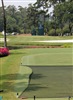 The view from the tee box on the par-3 third hole. The netting is used to keep players from chewing up the tee during practice rounds.