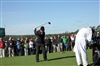 Titleist Brand Ambassador Charley Hoffman tees off on No. 1 on a chilly Augusta morning.