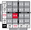 The standard setting for left-handed players is D•4 (shown in red on the chart).
