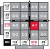 The standard setting for right-handed players is A•1 (shown in red on the chart). Use the black arrows as a guide to adjust the hosel setting until the desired ball flight is achieved.