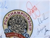 Davis Love III signs for a young fan behind the 9th tee.