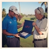 Mac Fritz, VP of Tour Promotion, presents Webb with a commemorative golden Pro V1x for his U.S. Open win at the Olympic Club.