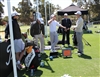 Titleist Brand Ambassador and 'Young Gun' Kieran Pratt from Victoria testing the new 913 drivers under the watchful eye of Tour Leadership representative Andrew Herwynen.