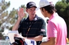 Titleist Brand Ambassador Brian Davis chats with Fordie Pitts on the practice green before a monday practice round.
