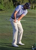 If Bobby gets his hands moving too quick, he catches the alignment stick with the back of his club.