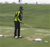 Staffer Tano Goya getting in some short game sharpening