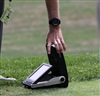 A new Prototype CB iron gets checked in the loft/lie machine inside the Titleist Tour Van.