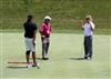 Titleist Tour Rep Chris Tuten checks in with Titleist Brand Ambassador Kevin Na.