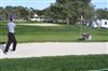 Titleist Brand Ambassador Kevin Na hits a couple bunker shots – over our photographer – onto the North Course's 9th green.