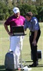Pro V1x loyalist Kris Blanks tested out the new Titleist Pro V1x prototype golf ball Tuesday on the range with Titleist Tour Rep Fordie Pitts.