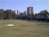 The practice putting green by the clubhouse.